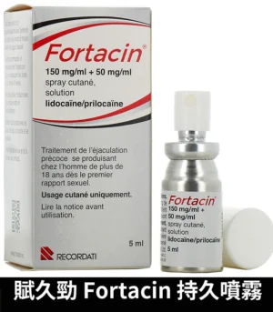 賦久勁 Fortacin 是一款專門為成年男性設計的局部延時噴霧劑,用於治療原發性早發性射精。此藥品的主要成分為兩種局部麻醉劑——Lidocaine 和 Prilocaine,它們的作用是降低龜頭的敏感度,從而有效延長性行為時間。其成分與國際上常見的延時噴霧劑相似,差異在於不同產品的劑量組合。