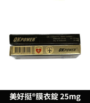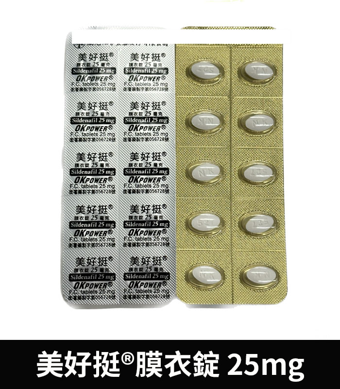 美好挺 OKPOWER 25mg 是台灣研發製造的合法壯陽藥品,主成分為西地那非(Sildenafil)25毫克,是威而鋼的學名成分。此產品特別針對初次接觸助勃藥物者、輕度勃起功能障礙(ED)患者、以及對高劑量副作用較為敏感者設計。提供溫和穩定的藥效,協助男性在性刺激下恢復自然勃起能力,提升性生活品質。