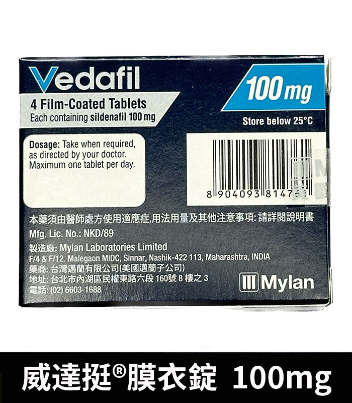 搶先評價 “威達挺 Vedafil 100mg 助勃膜衣錠 4顆裝丨Sildenafil 強效持久”