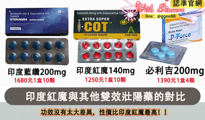 市面上常見的雙效壯陽藥包括印度紅魔、印度藍鑽和印度綠P。以下是三者的詳細對比表格: